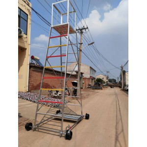 梯身及底架均可快速分解,便于搬遷。 帶有防制動器,既防傾倒,又便于在斜道上作業。 工作臺可以調節高度,便于運輸梯車高度用戶可根據情況自行確定。