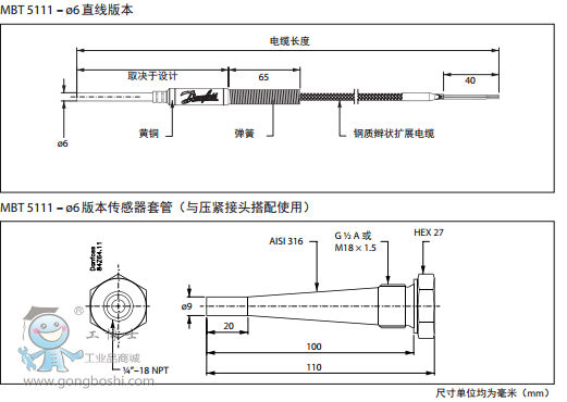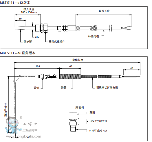 丹佛斯Danfoss MBT 5111, 排氣溫度傳感器