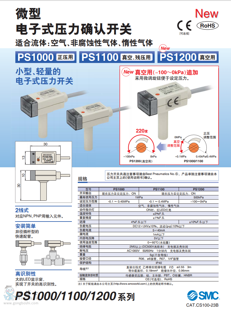 SMC 微型電子式壓力確認開關 PS1000/1100/1200