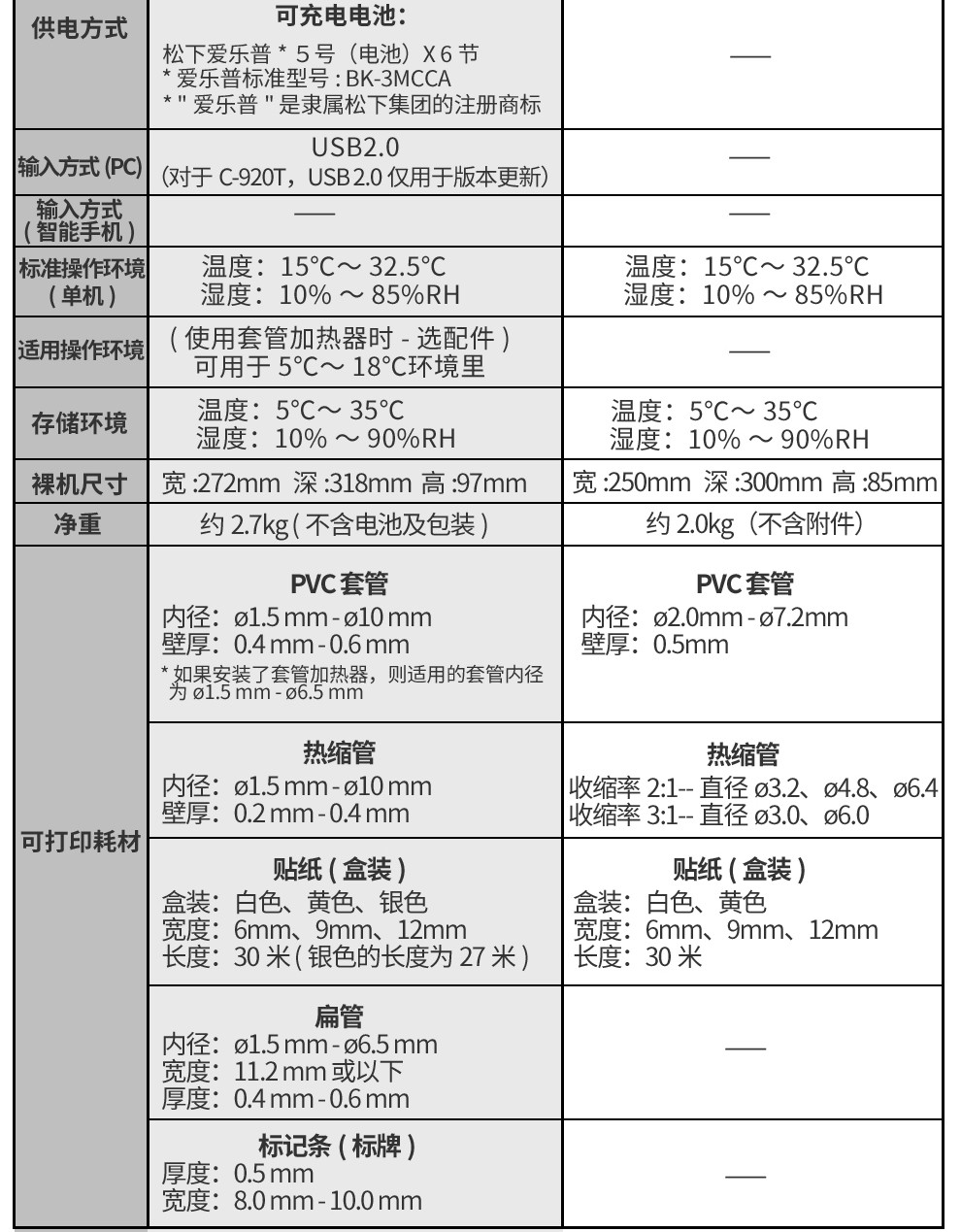 打印材質(zhì): 0.5-25平方熱縮管或套管