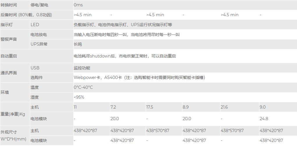• 雙轉換在線式UPS,0毫秒斷電