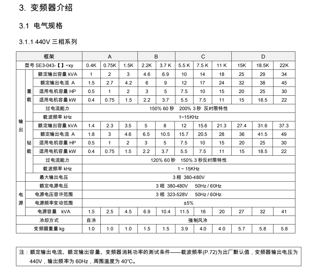 SE3-043-22K     功率22KW