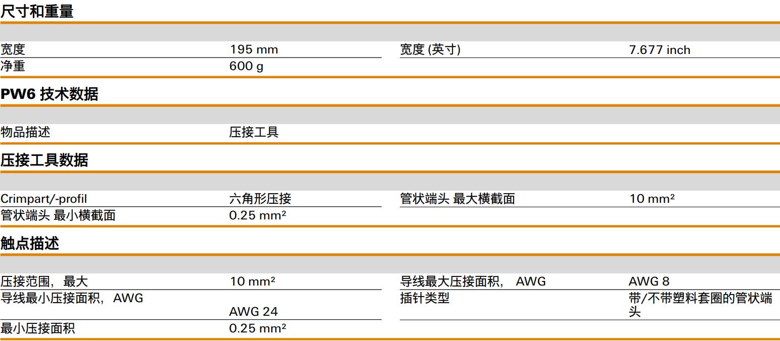 PZ 10 HEX魏德米勒weidmuller管狀端頭壓接工具訂貨號(hào)1445070000