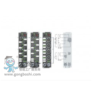 IE23xx 數字量 I/O 模塊內包括 4 點數字量輸入和 4 點數字量輸出。并為輸入提供各種濾波常數。輸出端的*大負載電流為 2 A,具有短路保護和反接保護功能。所有 4 個輸出端的總電流之和不能超過 4 A。在不需要所有通道同時輸出或者不是所有連接的執行器都需要 2 A 信號電流的場合,這種端子盒特別適用。其信號狀態由 LED 指示。信號連接可以選擇 8 mm 彈簧扣式(IE2320,IE2330)、M8(IE2321,IE2331)或 M12(IE2322,IE2322)螺旋式連接器。