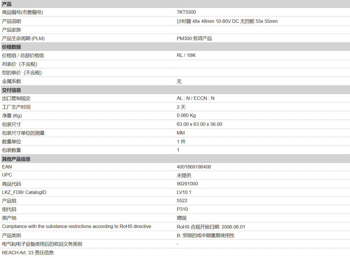 7KT5500計時器 48x 48mm 10-80V DC 無擋板 55x 55mm