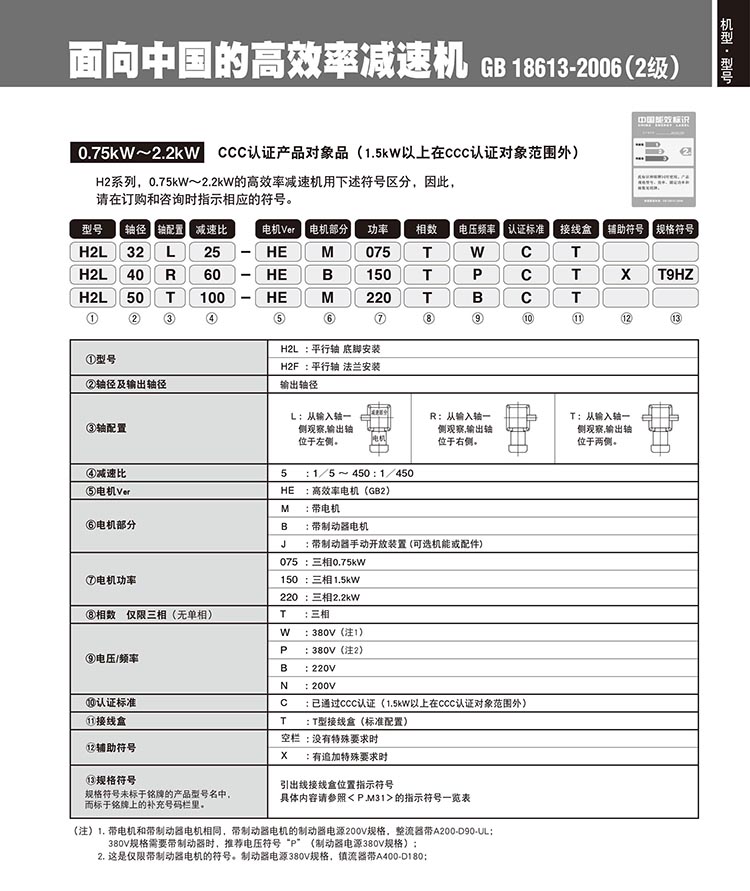 功率:0.1W~2.2KW 減速比:1/5~1/240(中國生產的產品);1/300~1/1800(日本進口產品)