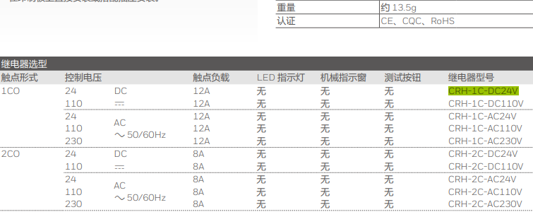 霍尼韋爾CRH-2C-DC24V 中間繼電器 CRH系列 8A不帶燈