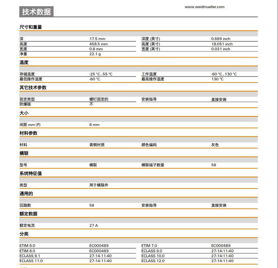 Weidmuller QB 58/8/9/WI 魏德米勒 橫聯(lián)件 訂貨號(hào) 0545300000