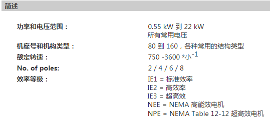 1LE0系列電動機SIMOTICS 1LE0 系列電動機是通用型全封閉自扇冷卻式三相異步電動機,其防護等級為 IP55,1LE0 系列電動機設計生產符合 ISO、IEC、GB 等相關標準的要求。