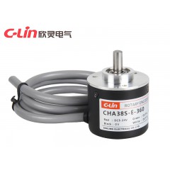 CHG38S旋轉編碼器是集光、機、電技術于一體的轉速、位移傳感器,當編碼器軸帶動光柵盤旋轉時,經發光元件發出的光被光柵盤狹縫切割成斷續光線并被接收元件接收,產生信號經后續電路處理后輸出脈沖或代碼信號。