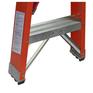6202 玻璃鋼梯凳,額定負(fù)載為 136kg 。模制頂座可提供寬大的站立平臺(tái),站立舒適。梯腳鉚接硬質(zhì)防滑橡膠墊,防滑性能好,使用壽命長。梯腳處帶有模制斜撐,能防止梯腳碰撞損壞。底部踏板與梯框通過斜撐加固,不會(huì)脫離。玻璃鋼梯框具有絕緣性,適合近電作業(yè)。