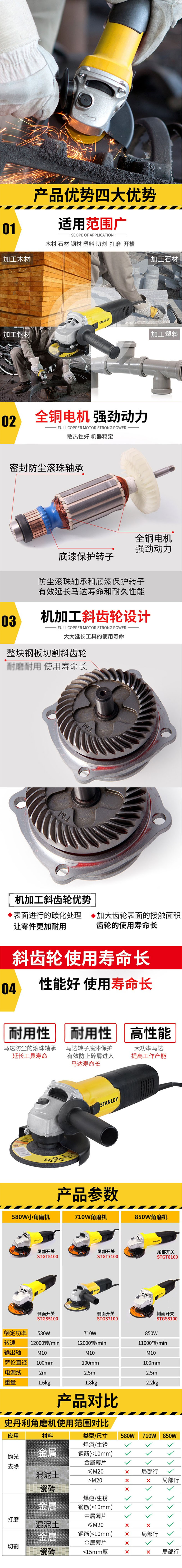 Stanley史丹利電動工具800W 100MM角磨機STGS8100A-A9