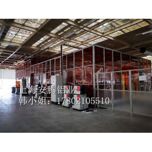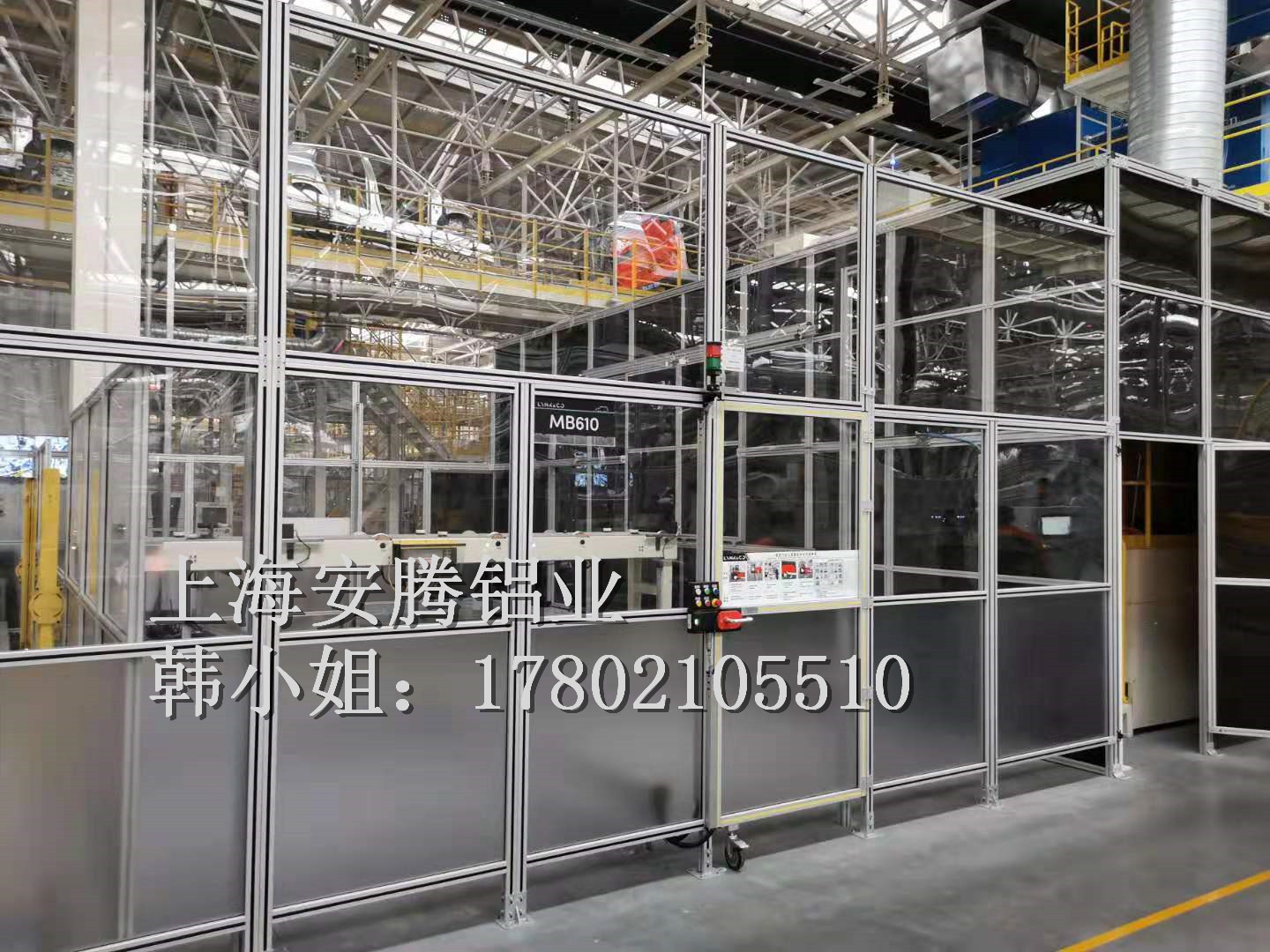 上海安騰鋁業韓小姐 專業承接汽車生產流水線安全圍欄,機器人弧焊房,機器人打磨房等工業防護項目::工業鋁型材框架安全圍欄,機器人弧焊房案例展示: