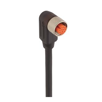 M12標準傳感器/致動器單端電線組件:母頭,有角度,12針,A編碼,半透明體,30伏交流電/DC,1.5安;PUR黑色電纜,12線,0.25毫米
