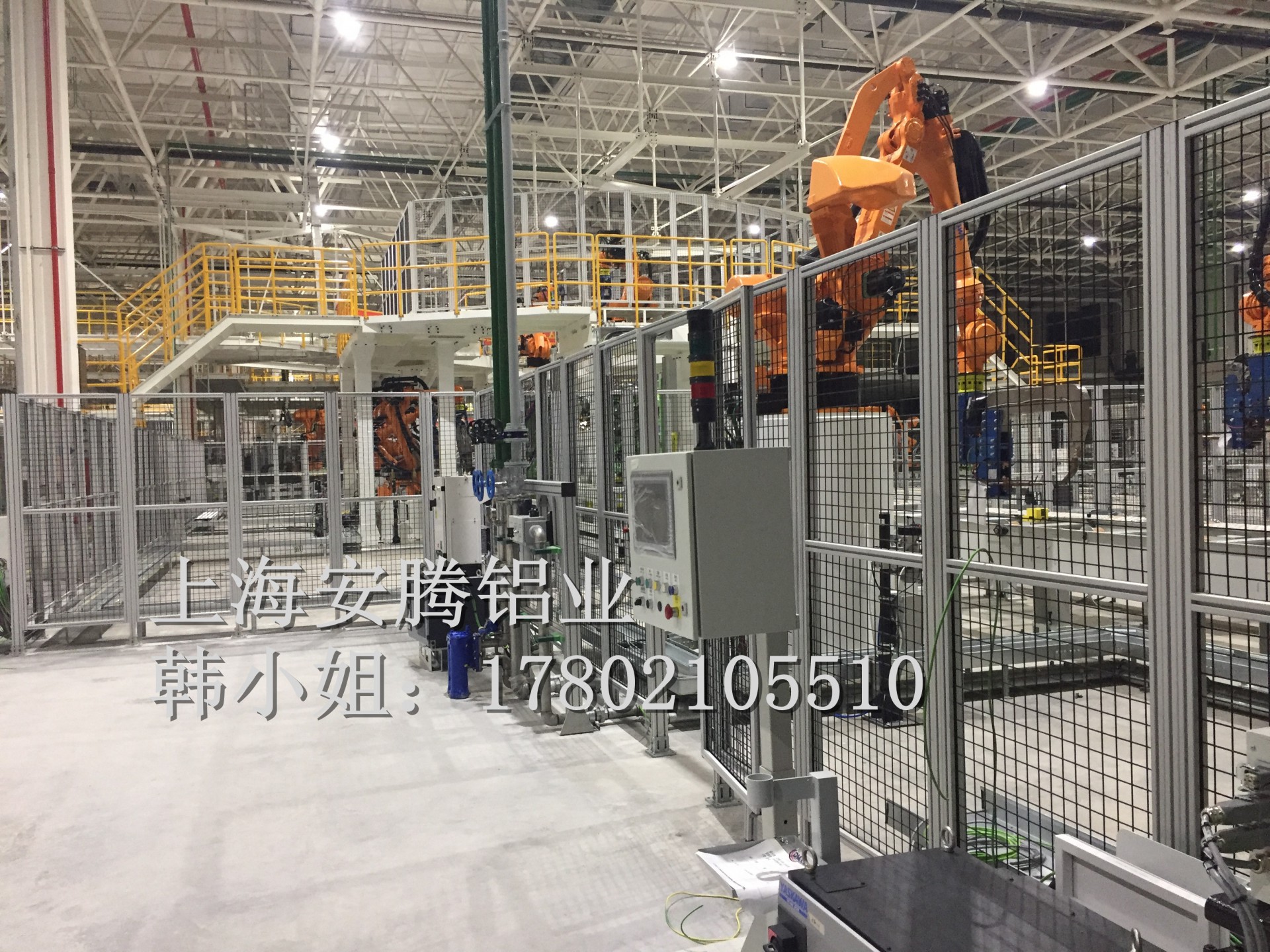 上海安騰鋁業韓小姐 專業承接大型機床,機械,智能裝備,汽車生產流水線機器人安全防護圍欄,機器人弧焊房,機器人除塵房;打磨房等大型工業機械設備防護項目: