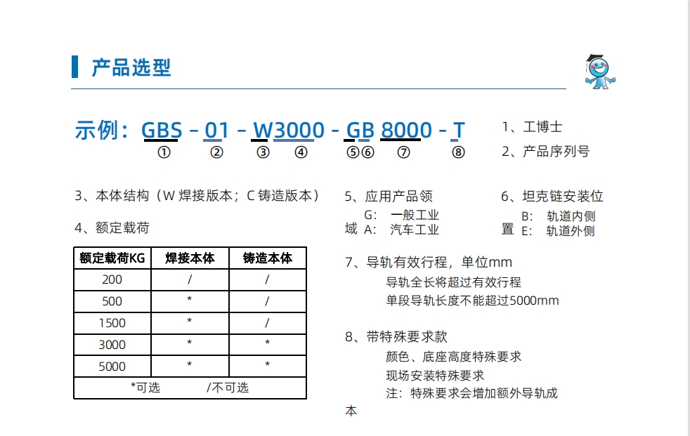 工博士機器人導(dǎo)軌GBS-01-W3000型 運動板額定負載3000kg