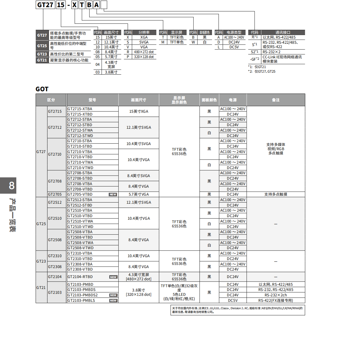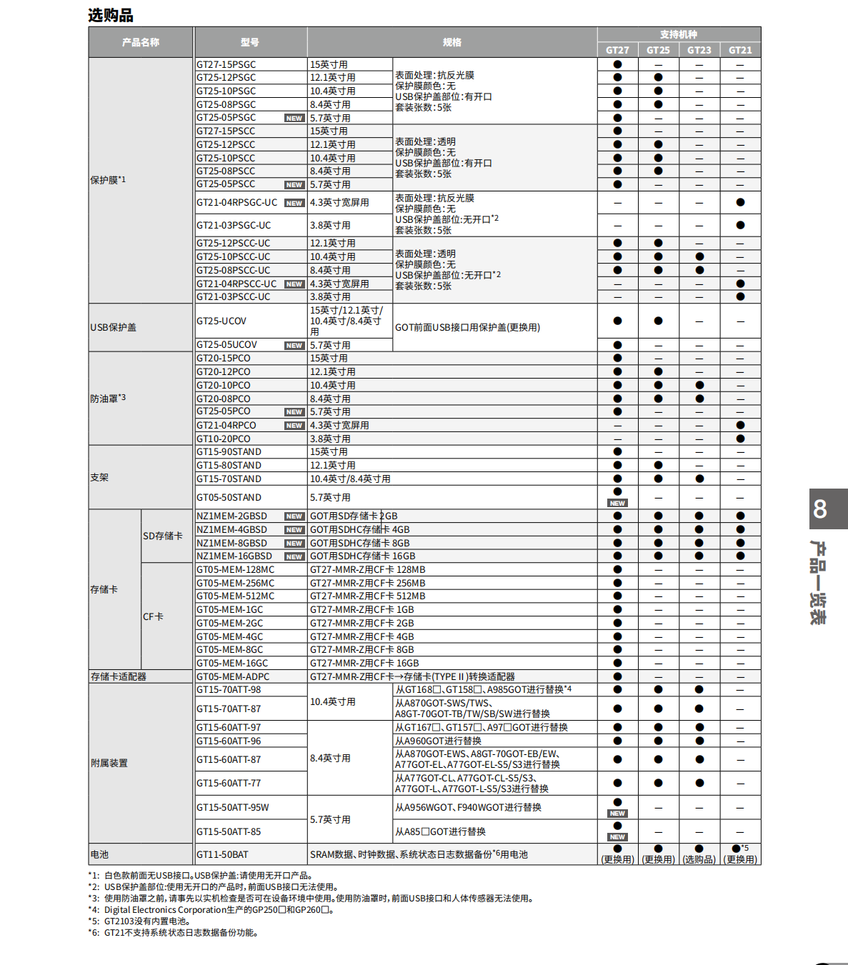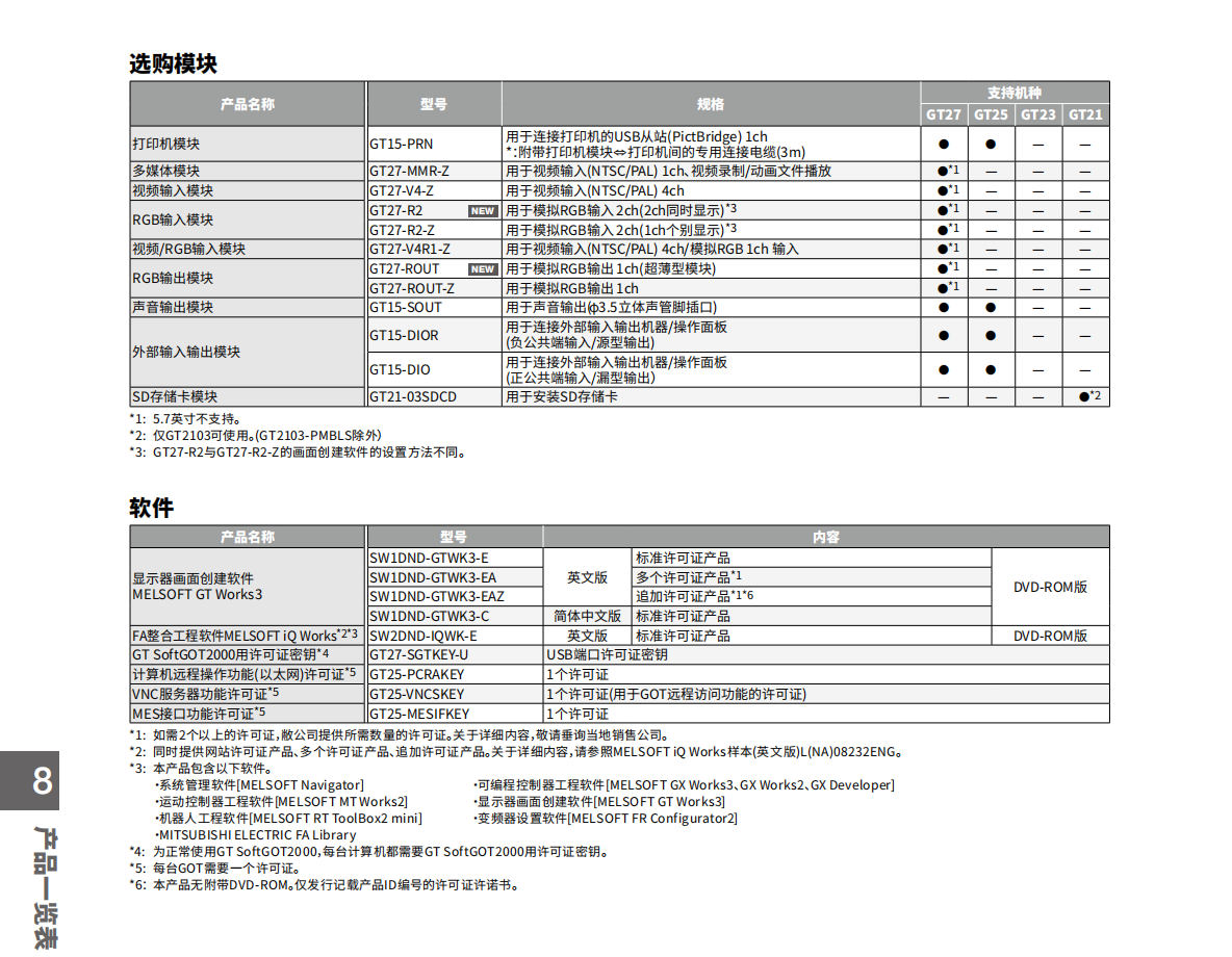 三菱GOT2000系列觸摸屏及附件型號表;