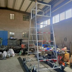 梯身及底架均可快速分解,便于搬遷。帶有防制動器,既防傾倒,又便于在斜道上作業。工作臺可以調節高度,三擋調節, 便于運輸梯車高度用戶可根據情況自行確定。