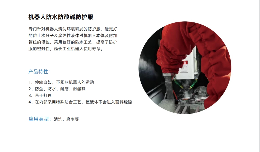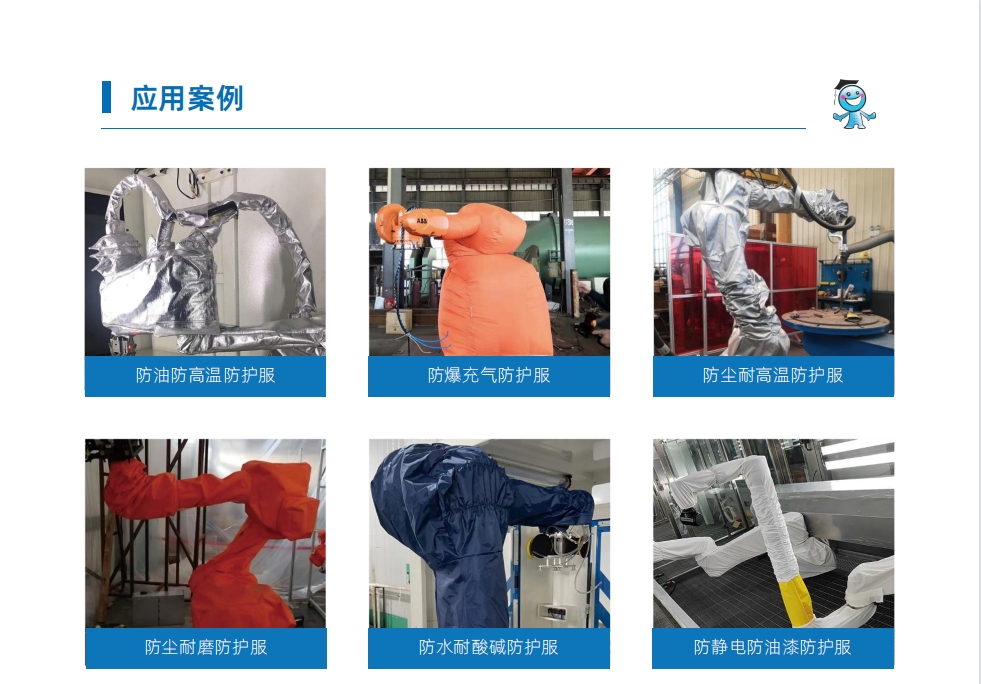 工博士機器人防護服,能夠保護工業機器人本體,降低其損壞頻率,同時減少人工清理和維護保養成本。