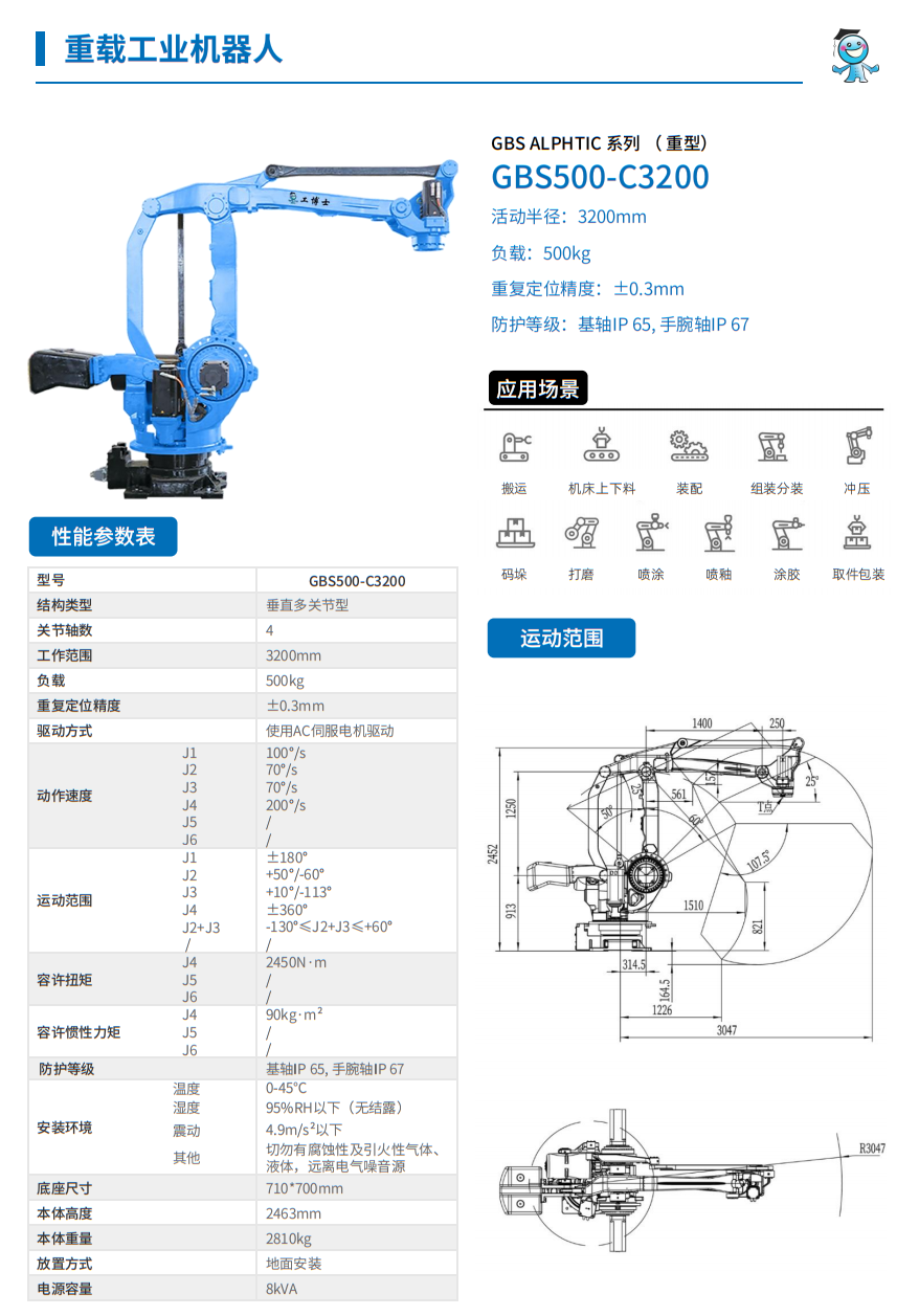 工博士 ALPHTIC 系列 (重載型)GBS500-C3200負載:500kg臂展:3200mm