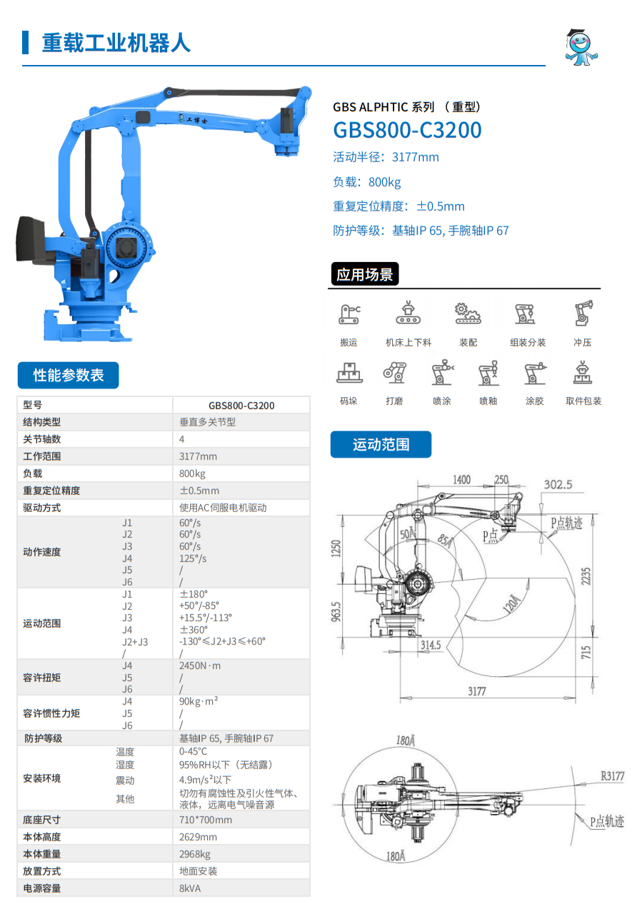 工博士 ALPHTIC 系列 (重載型)GBS800-C3200負載:800kg臂展:3177mm