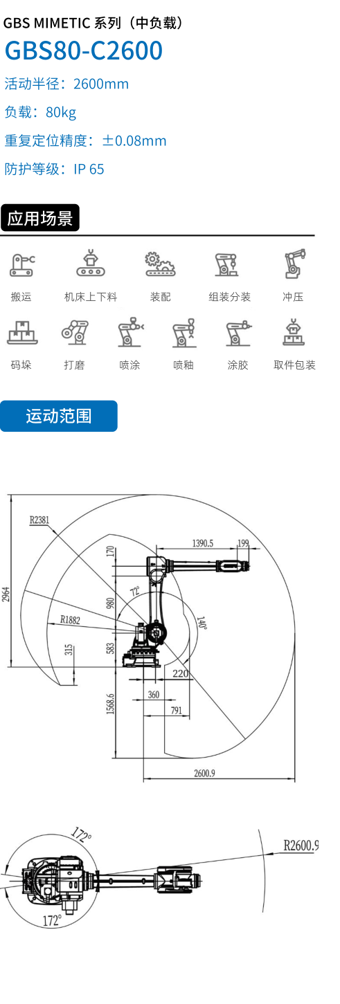 工博士中負載工業機器人GBS80-C2600