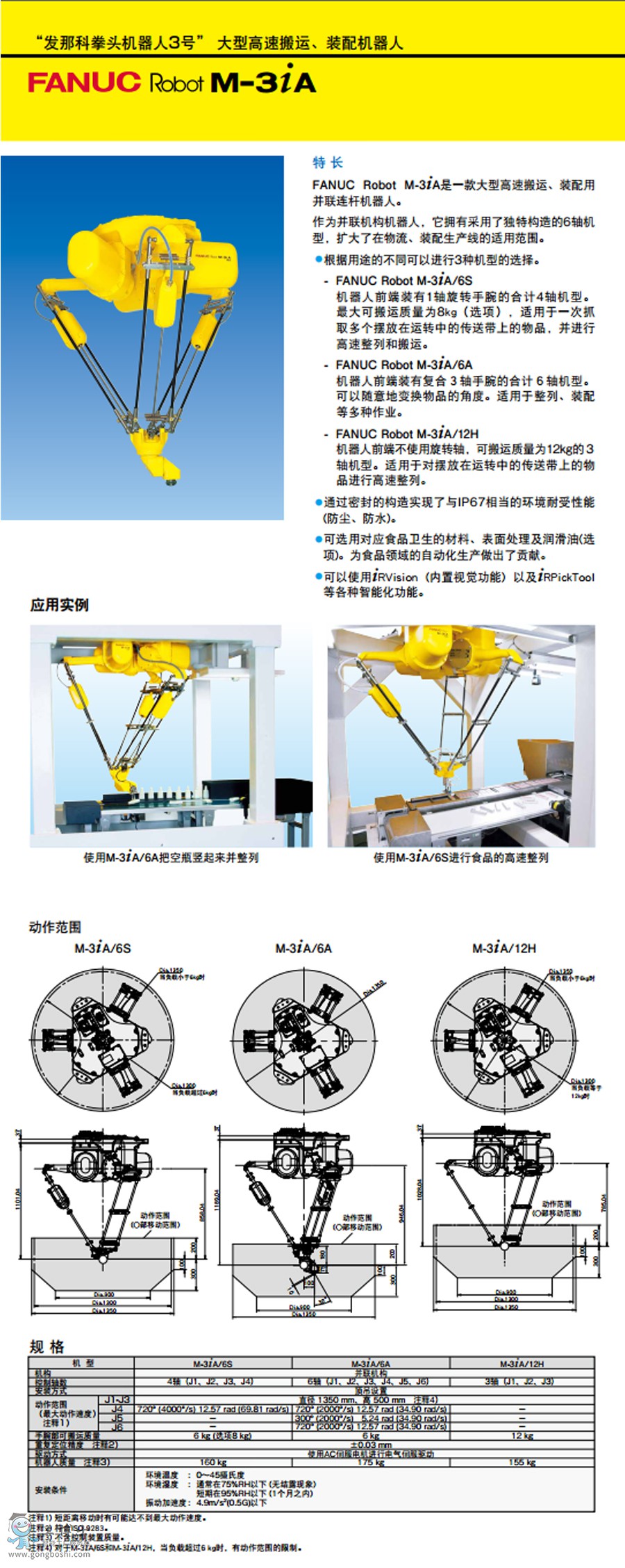 發那科/FANUC M-3iA/12H 負載 12kg 工作區域 1350mm