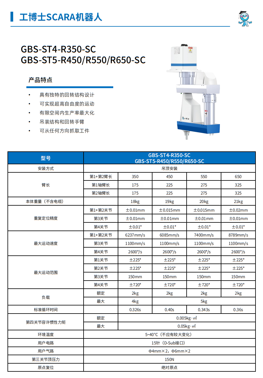 工博士SCARA機器人GBS-ST5-R550-SC 負載:5kg 臂長:550mm