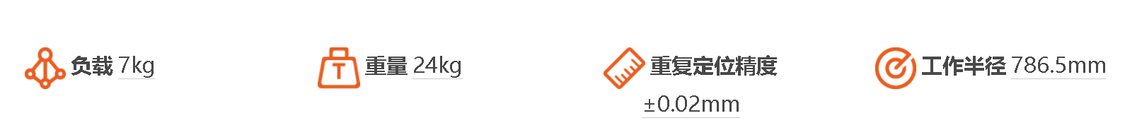 負載7kg,臂展908.5mm,***大工作半徑786.5mm