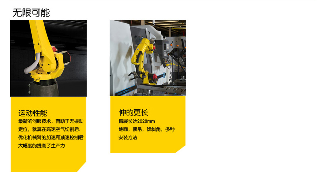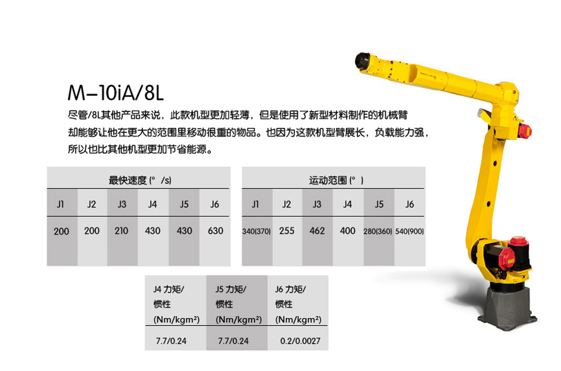 纖細的M-10iD/8L非常適合在緊湊的機器人單元中工作,占地面積小,可以倒置安裝或傾斜安裝,以獲得更大的靈活性。