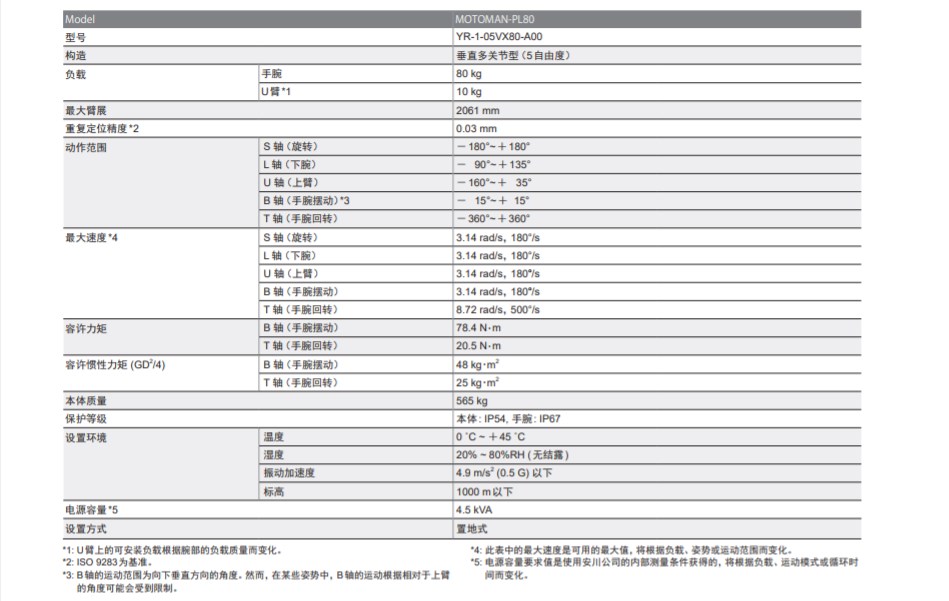 安川機器人PL80 5軸垂直多關節型 負載80kg