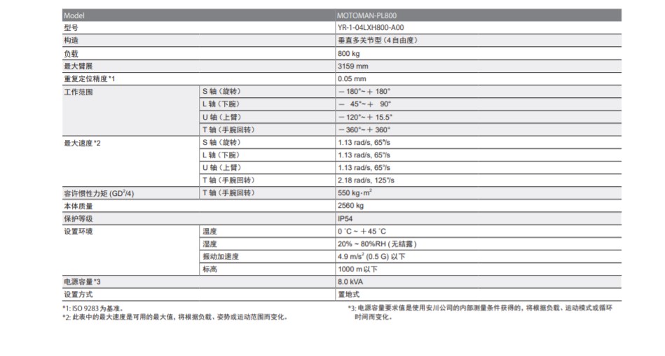 安川機器人PL800 4軸垂直多關節型 負載800kg