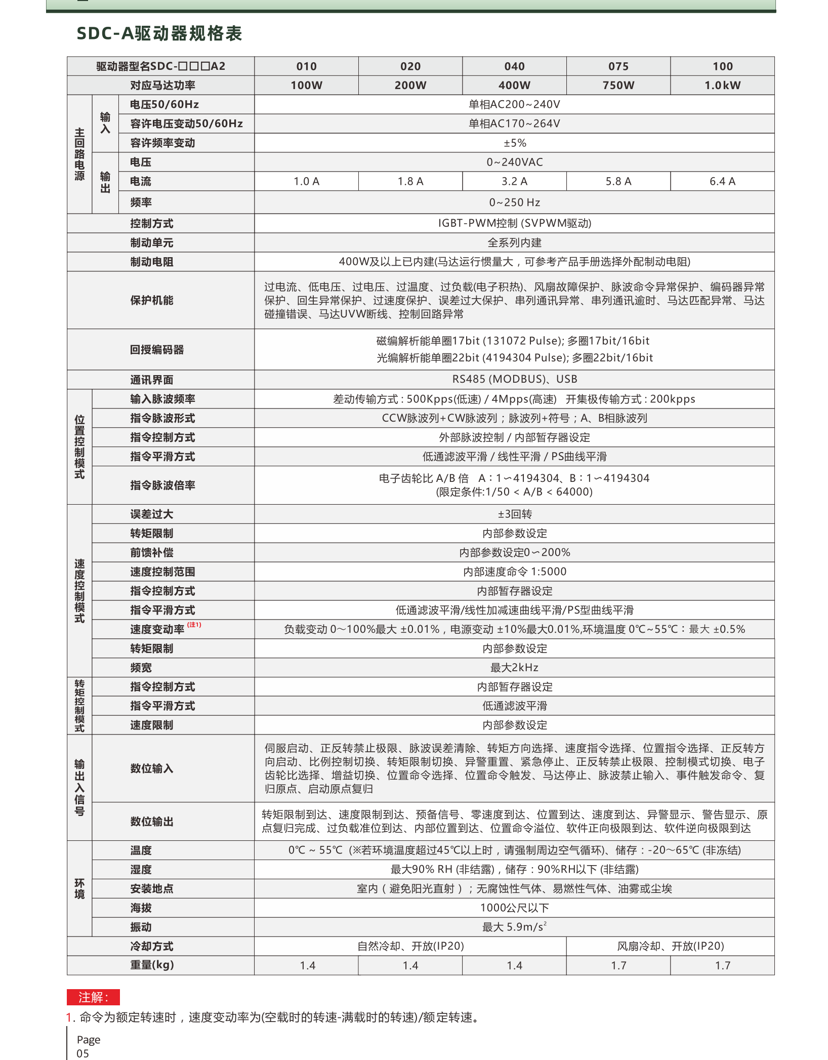 士林伺服SDC系列100W-1KW伺服系統產品簡介;