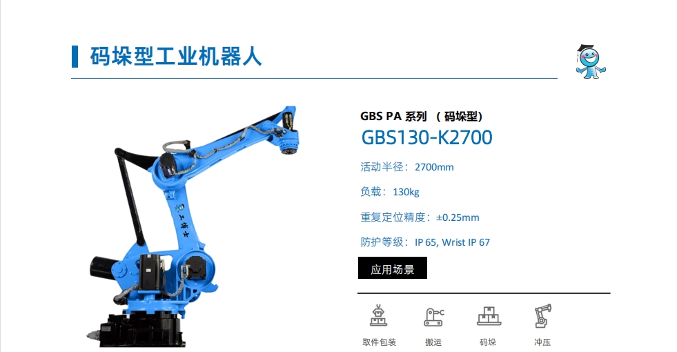工博士擁有全系列工業(yè)機器人,產品線覆蓋6~500kg大、中、小負載機器人,根據類型可分為通用型、桌面型、焊接型、沖壓型、碼垛型和重型機器人。