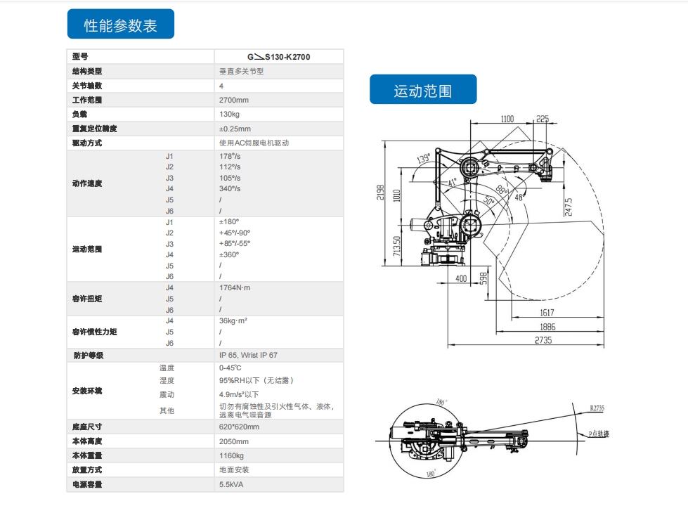 工博士機器人 GBS130-K2700 活動半徑2700mm 負載130kg