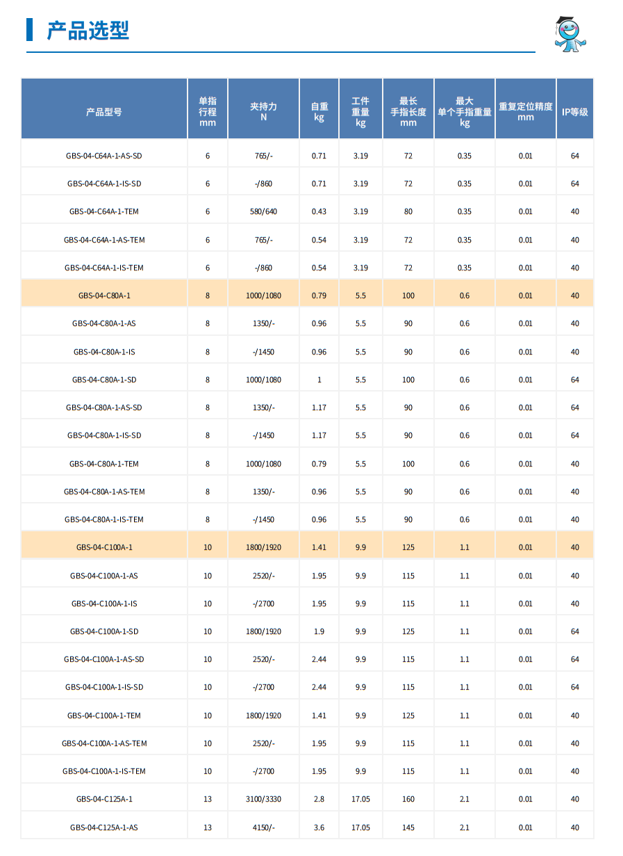 工博士三指定心式夾爪GBS-04-C300A-1-IS單指行程35mm夾持力-/22700N