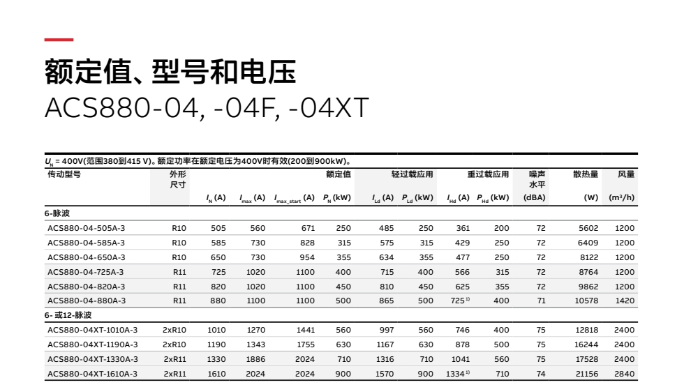ABB變頻器ACS880-04-880A-3 400KW重載專用變頻器
