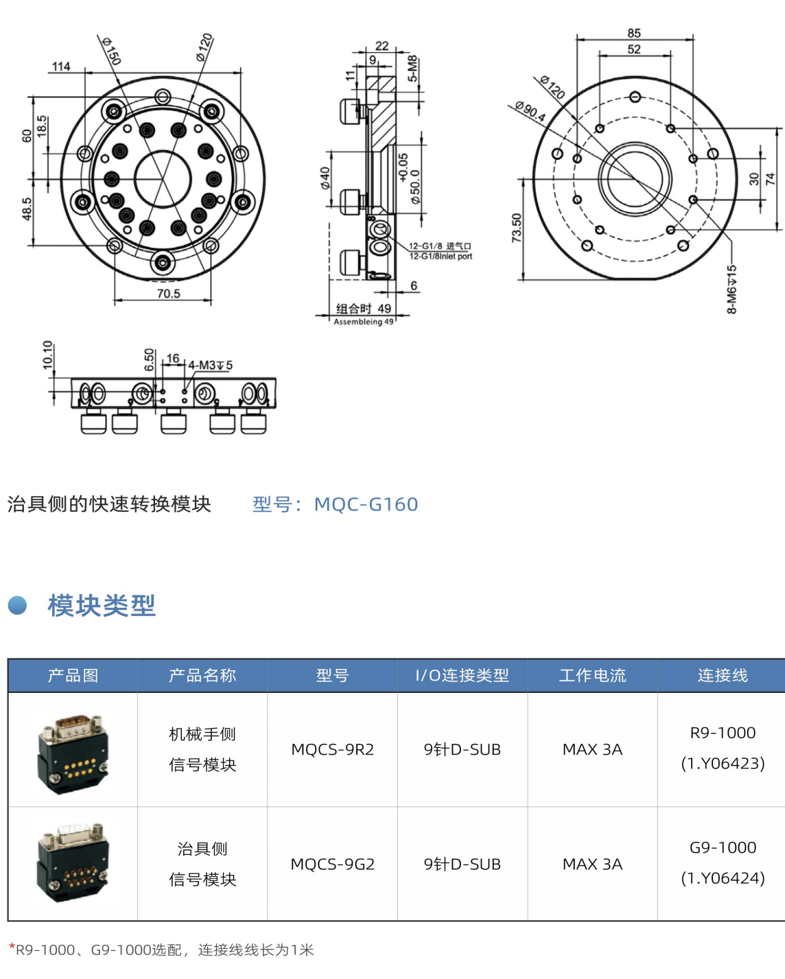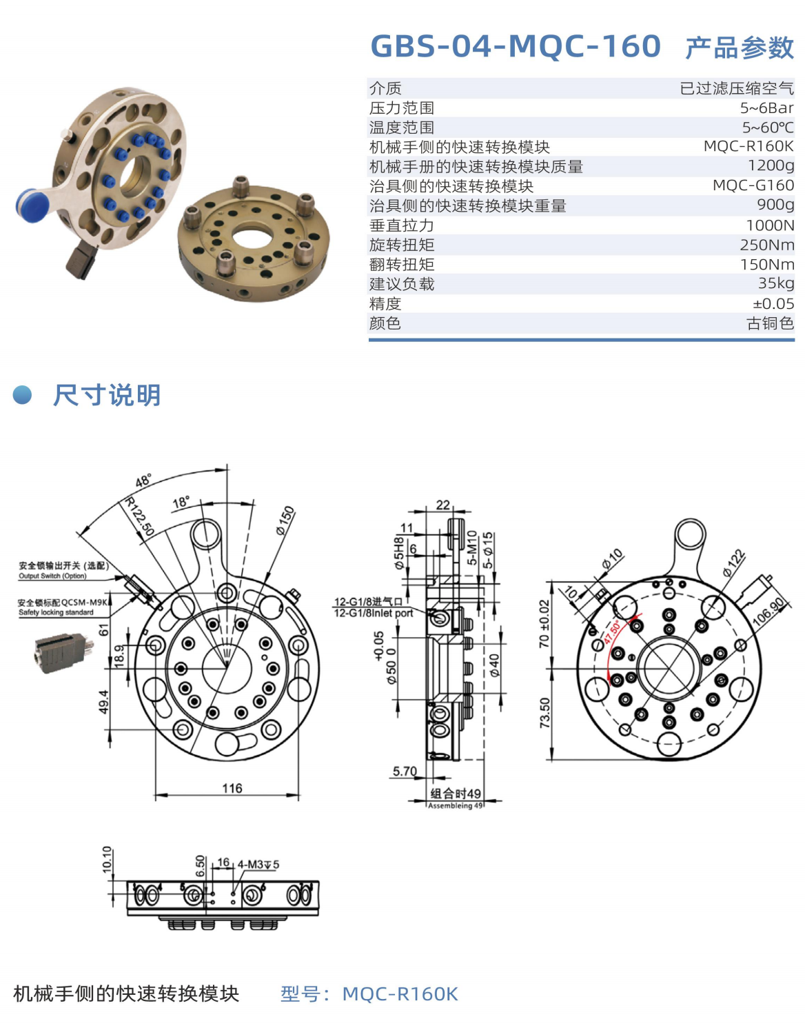 工業機器人快換盤,GBS-04-MQC-160,圓形手動快換,工博士機器人快換盤,