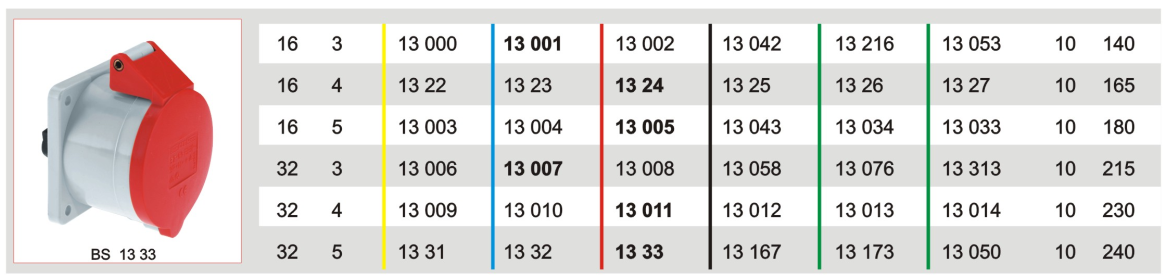 霸士BALS德國暗裝插座直插式BS 13 33 5P/32A/400V/IP44