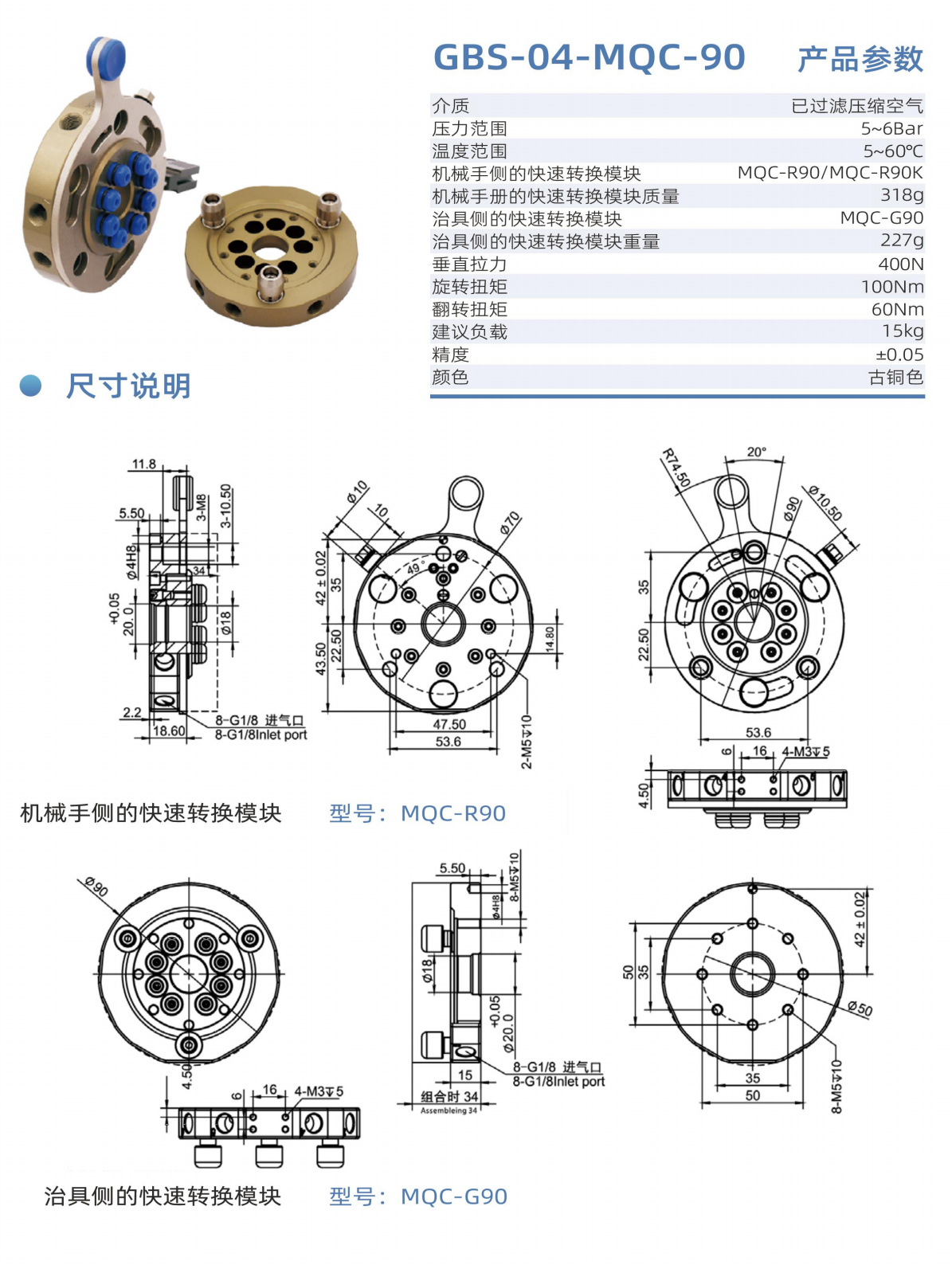 機械手側(cè)的快換轉(zhuǎn)換模塊型號:MQC-R90
