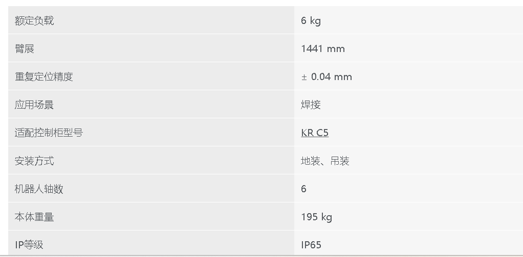 庫卡KR 6 R1440-2 arc HW E 弧焊小型機(jī)器人。額定負(fù)載6 kg
