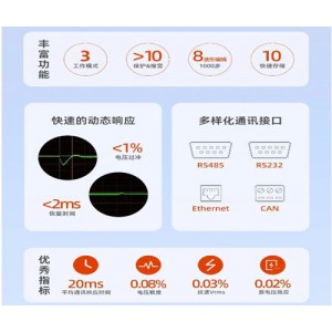 HB系列電源產品提供了全面可靠的保護機制,針對輸入交流電壓異常(過高、過低、缺相)、直流母線電壓異常(過高、過低)、內部功率管過流、過溫度、輸出過壓、欠壓、輸出過流、輸出電流超限、電壓/電流階躍時間超限、補償段子接反或過補償等異常狀態均提供快速、可靠的保護報警機制,且與負載有關的保護閾值是可設的。