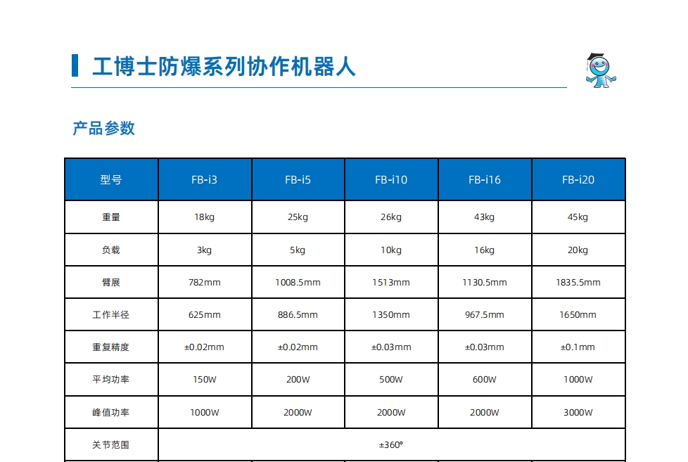 工博士防爆協(xié)作機(jī)器人GBS FB-i20工作半徑1650mm 負(fù)載20kg