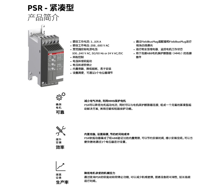 ABB PSR系列 軟起動器PSR12-600-70 400V 5.5KW