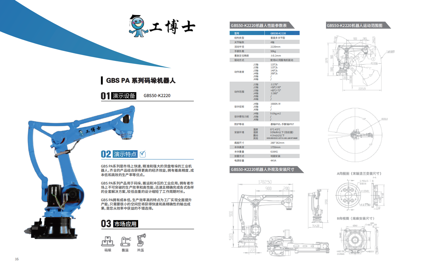 工博士碼垛機器人型號;GBS50-K2220