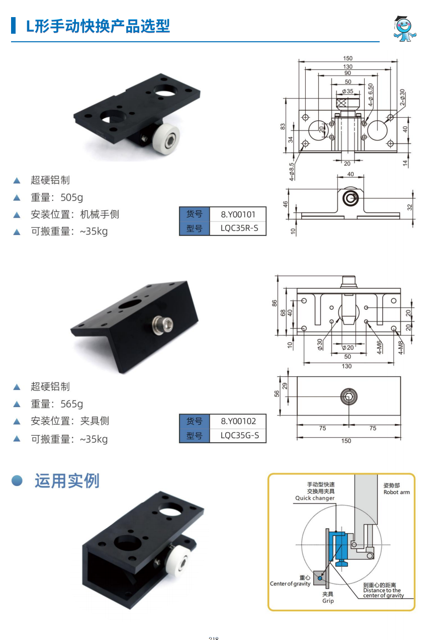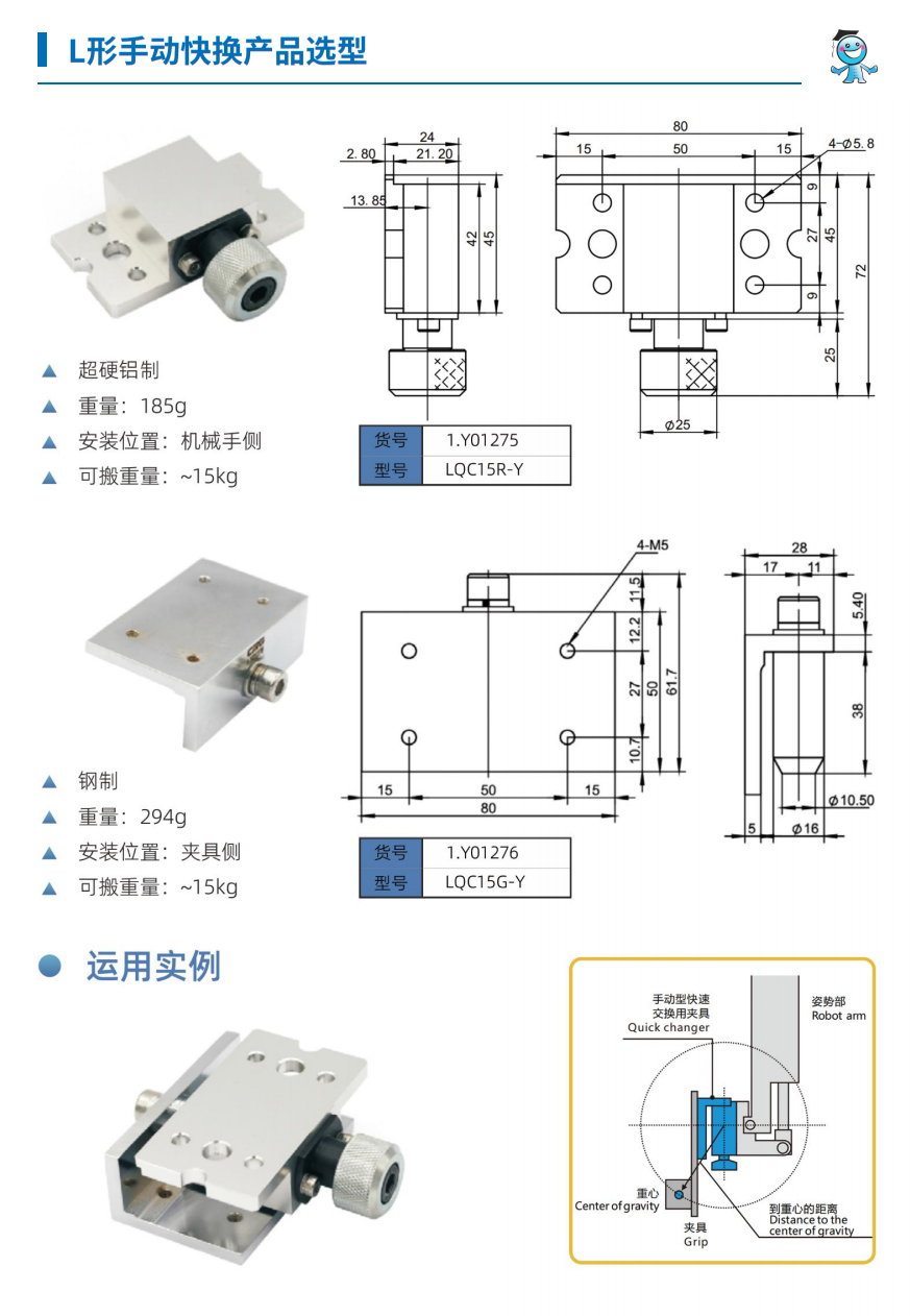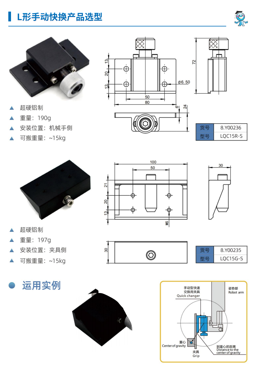 工博士機器人L形手動快換LQC15R-Y 重量185g 負載15kg