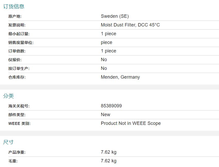 3HAC029589-001 ABB機(jī)器人備件 濕塵過濾器