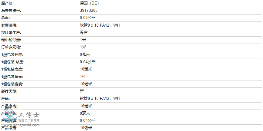 ABB工業機器人配件 3HNA002918-001 軟管 HOSE 8 x 10 PA12, WH