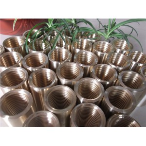 鋁青銅銅套牌號有QAL9-4、QAL10-4-4、QAL10-3-1.5, QAL9-2 QAL10-5-5, QAL7 ,QAL5, QAL11-6-6, QAL9-5-1-1, QAL10-5-5, QAL11-6-6等牌號的棒材、管材、大規格澆鑄件、蝸輪、螺母、板材等。