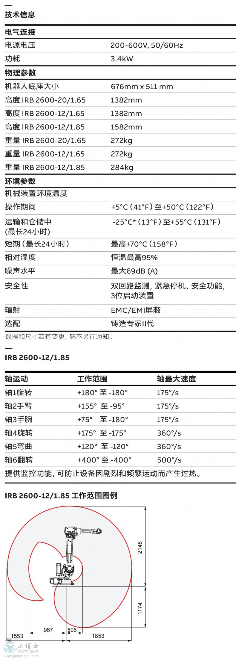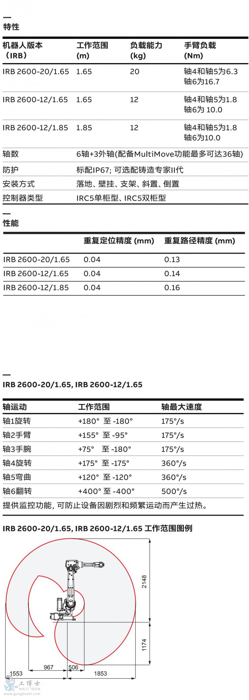 IRB 2600-12/1.65 負載12KG,臂展1650mm,ABB輕負載機器人